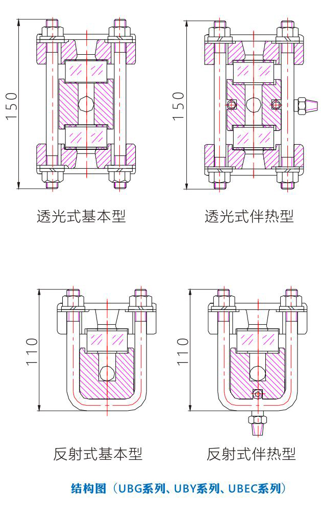 UBG系列、UBY系列、UBGY系列高溫高壓玻璃液位計(jì)由表體、上閥門、下閥門、排污閥(或排污法蘭)、放空閥(或放空堵頭)組成。上下端安裝法蘭與容器上對應(yīng)法蘭相連構(gòu)成連通器、透過玻璃板可直接觀察到容器內(nèi)液位的實(shí)際高度,上、下閥門內(nèi)均設(shè)有安全保護(hù)裝置,當(dāng)玻璃板意外損壞時,保護(hù)鋼球在容器內(nèi)壓的作用下自動密封,防止容器內(nèi)液體繼續(xù)外泄。